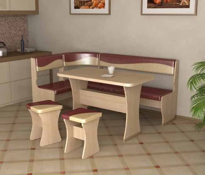 - столы лучше всего приобретать раздвижные и овальной формы. Заранее определитесь с тем, какой Вам нужен угловой диван – правосторонний или левосторонний. Существуют и диванчики П-образной или U-образной формы. Для удобства хранения вещей выбирайте модели, имеющие встроенные ящики.