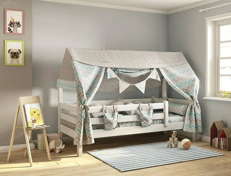 Все кровати «Соня» можно комплектовать аксессуарами из текстиля. Балдахин для кровати позволит создать ребёнку уютный уголок, где можно как играть, так и хранить игрушки.