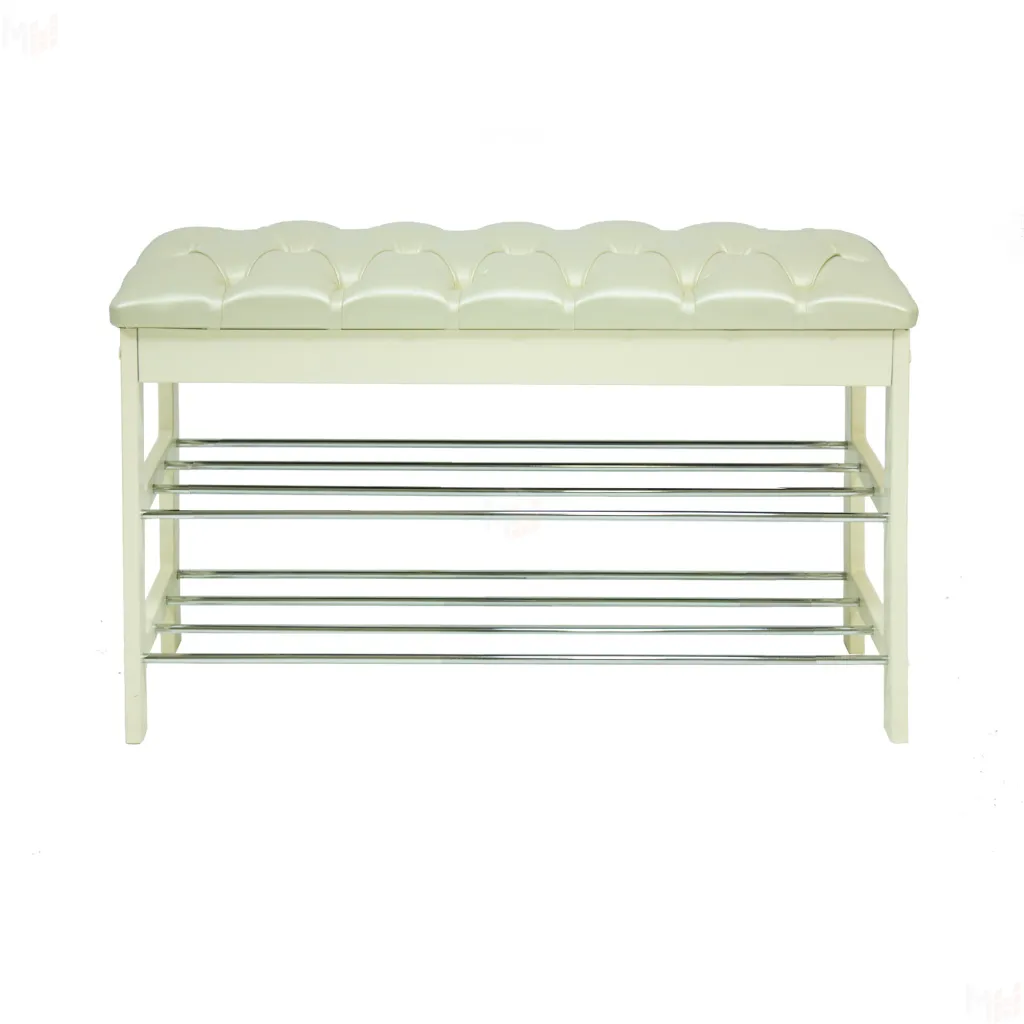 Широкая двухместная банкетка с мягким сиденьем и полкой для обуви. Она сделана в незамысловатом дизайне и органично впишется в любой интерьер.