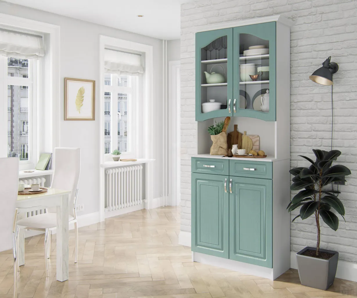 Буфет "Прованс-08" – идеальный вариант для классической кухни или гостиной. Модель имеет элегантный дизайн и выполняется в нежных расцветках, особую легкость и воздушность ей придают стеклянные фасады. Верхний шкафчик буфета укомплектован широкими полочками, на которых удобно размещать различную посуду. В нижней части конструкции предусмотрены выдвижные ящики и вместительная тумба, где можно скрыть от посторонних взглядов все лишние вещи. Дополнительную функциональность модели придает удобная столешница, которая может использоваться в качестве рабочей поверхности или играть роль подставки для декора. Буфет оформлен декоративным карнизом.