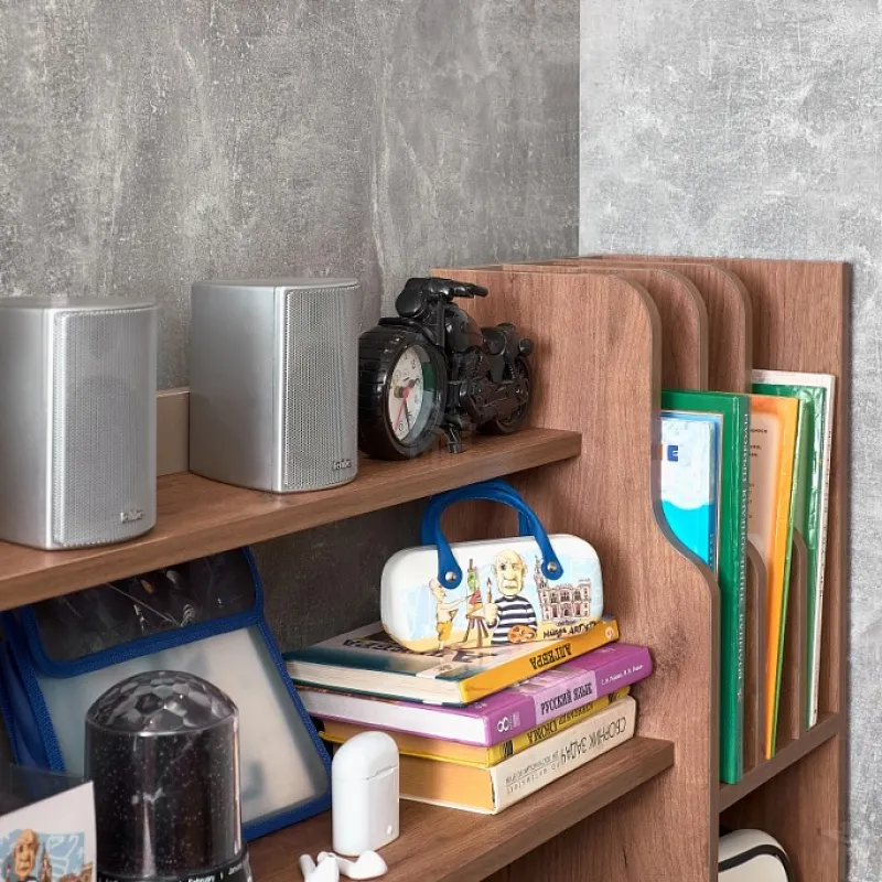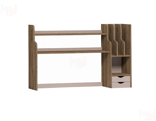 Два небольших ящичка, открытые полки и ниши стеллажа-надстройки к модулю Cтол письменный Nature 84 помогут организовать рабочее место так, чтобы все было под рукой. Надстройка с фигурными закругленными краями может собираться на правую и левую сторону из одного комплекта деталей.