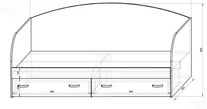 Кровать 800х1935х850 мм. Спальное место 1900х800 мм.