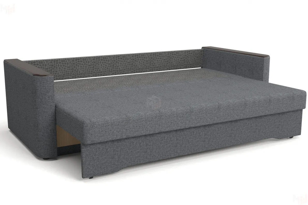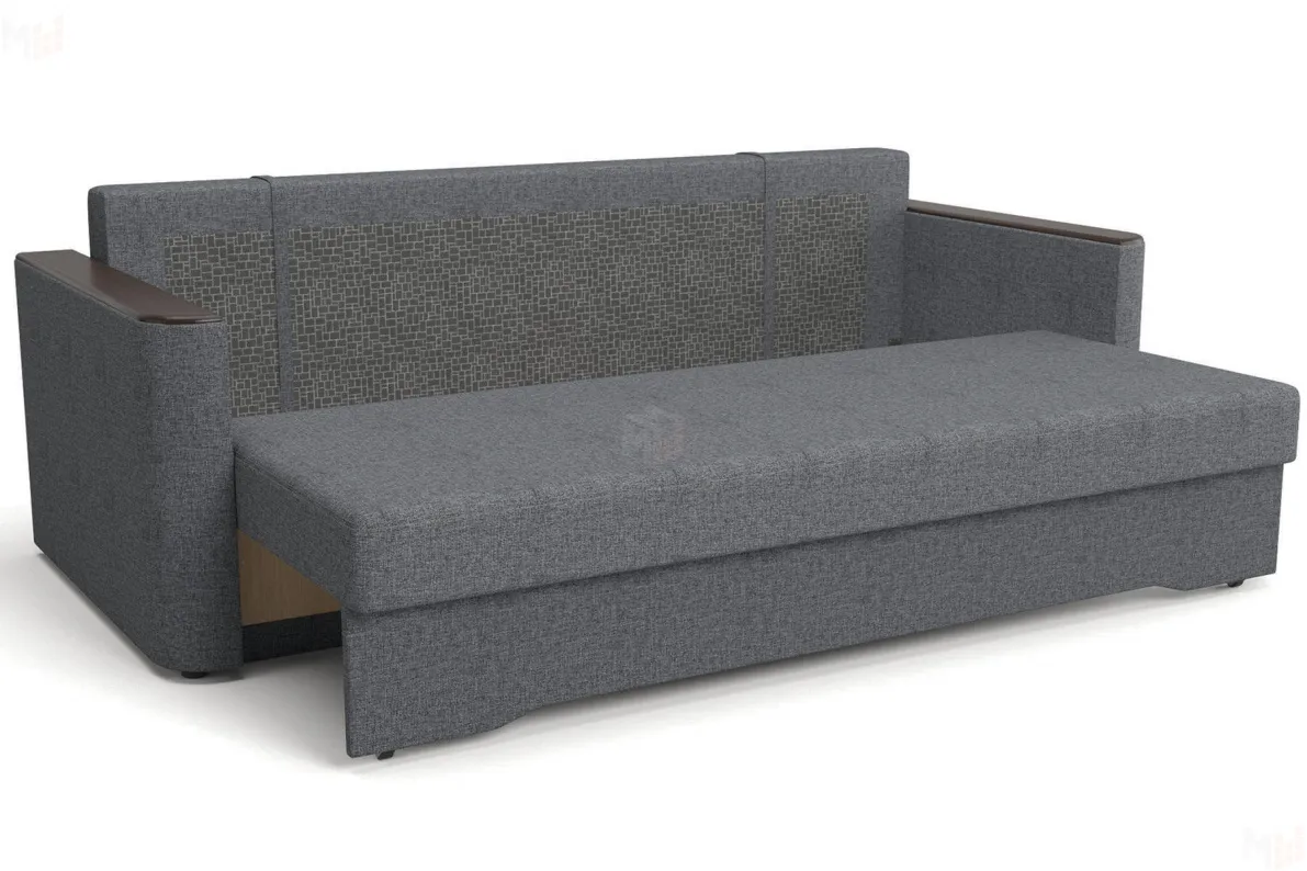 Долговечным этот диван делают высокопрочный каркас из бруса и ламинированной древесно-стружечной плиты (ЛДСП) и надежный механизм трансформации «Еврокнижка», где просто нечему ломаться ввиду отсутствия сложных узлов. Мягкие элементы модели созданы на основе пористого ППУ (пенополиуритана), полученного из синтетических полимеров и обработанного антигрибковым, антивирусным и антибактериальным составами. Материал экологичен, быстро восстанавливается после смятия, не впитывает и не выделяет пыль, не плесневеет. -