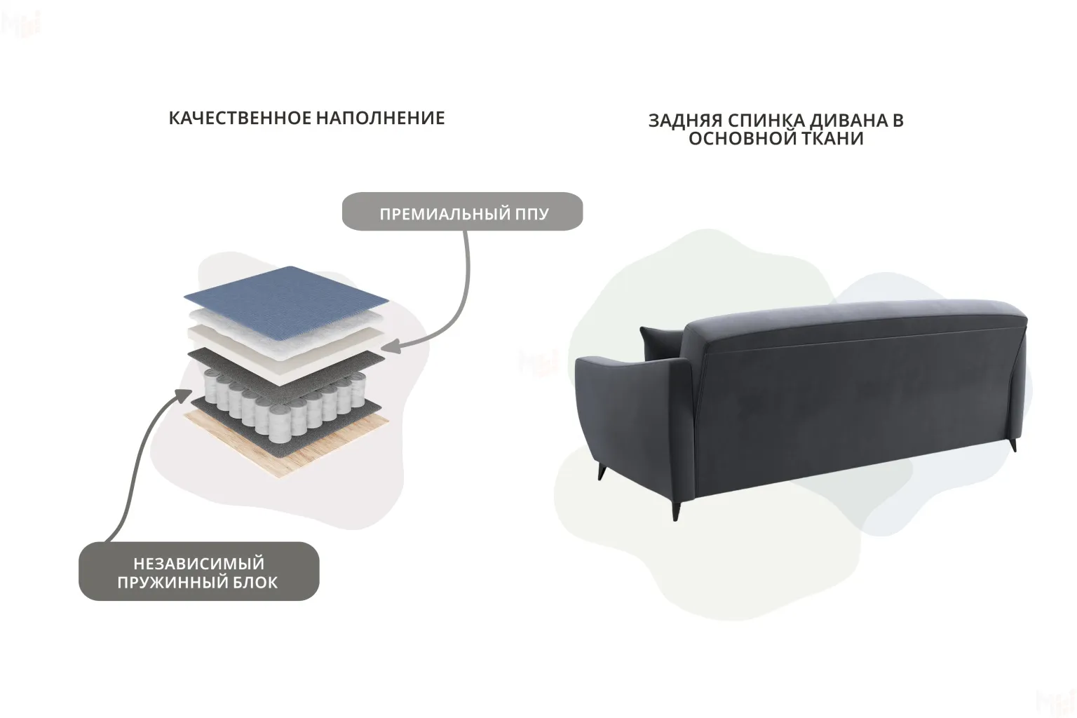 - Наличие четырех декоративных подушек.