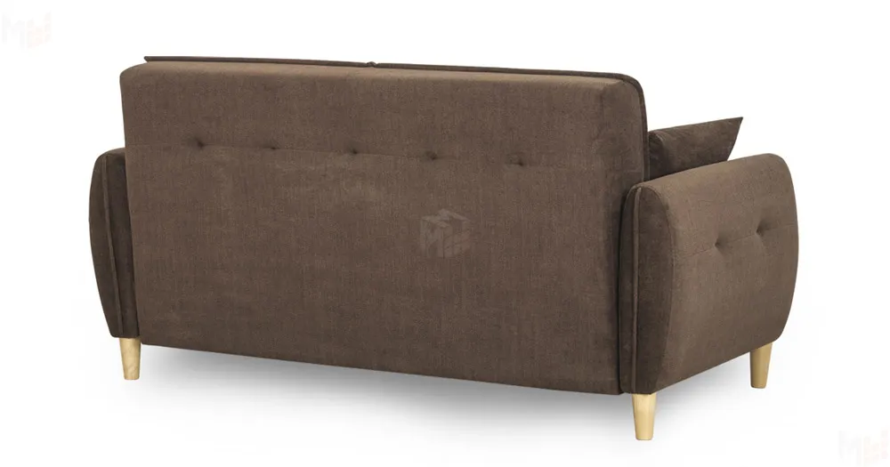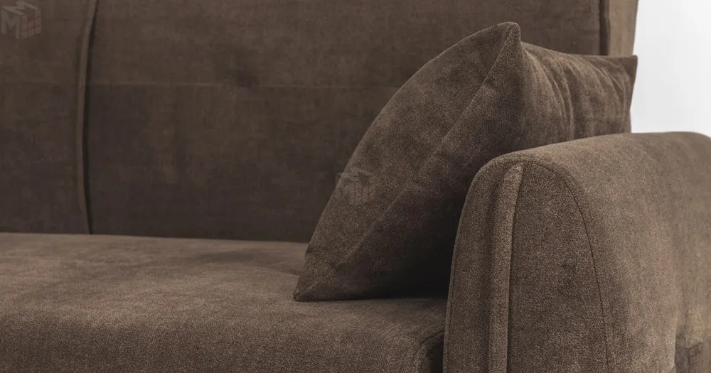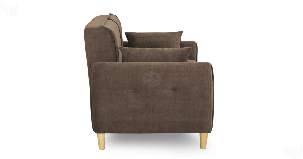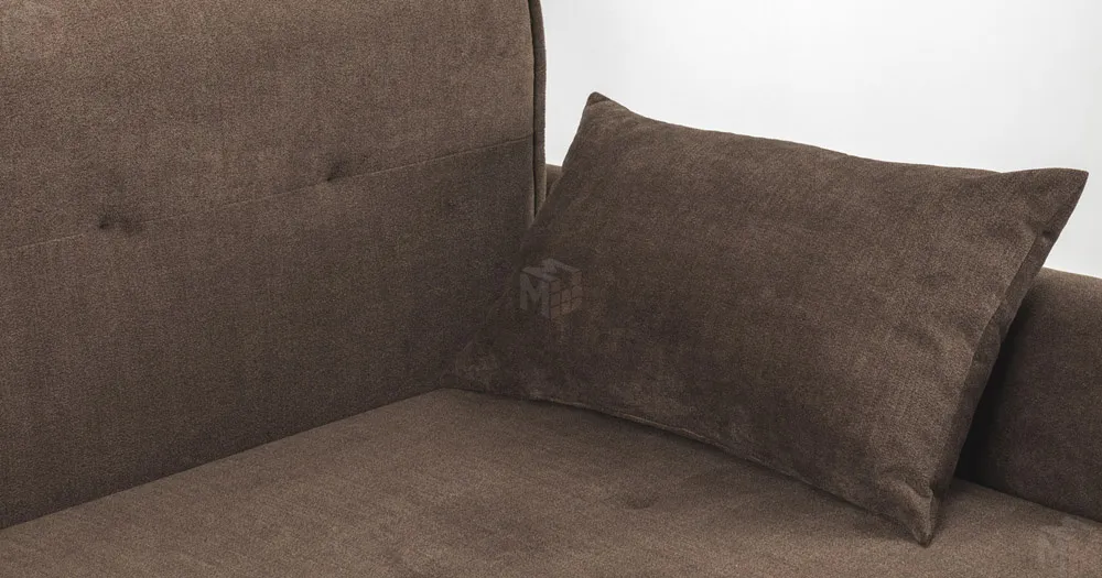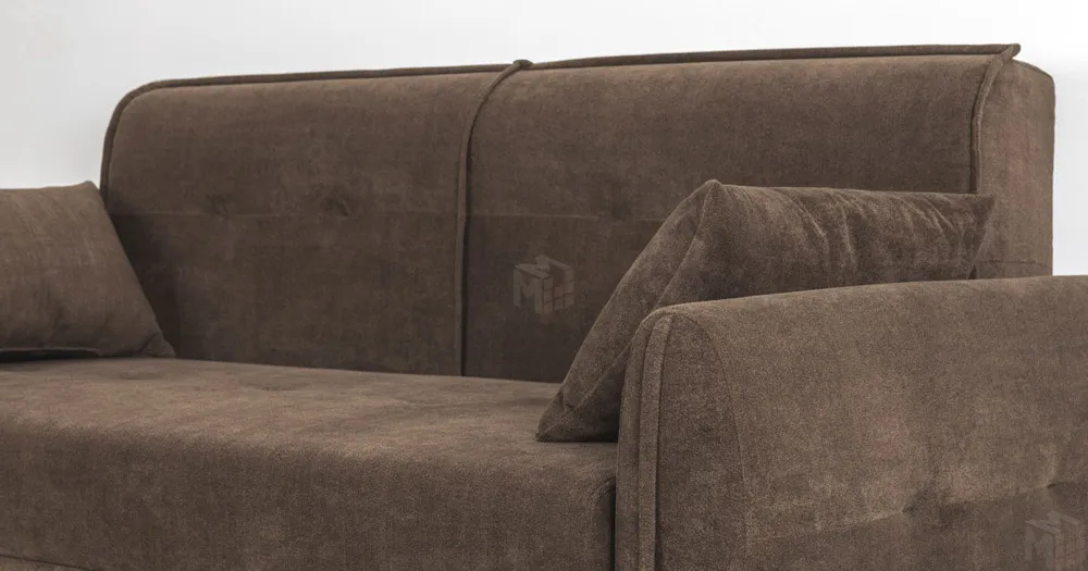 Мягкая спинка с имитацией приспинных подушек. Утяжки на передней и задней стороне спинки, на сиденье и подлокотниках.
