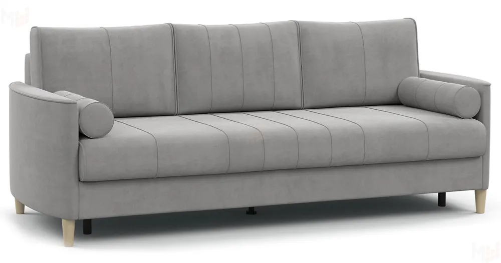 Кант на торцах приспинных подушек, сиденья и подлокотников. Защипы на сиденье и приспинных подушках. Две декоративные подушки-валика с защипами.