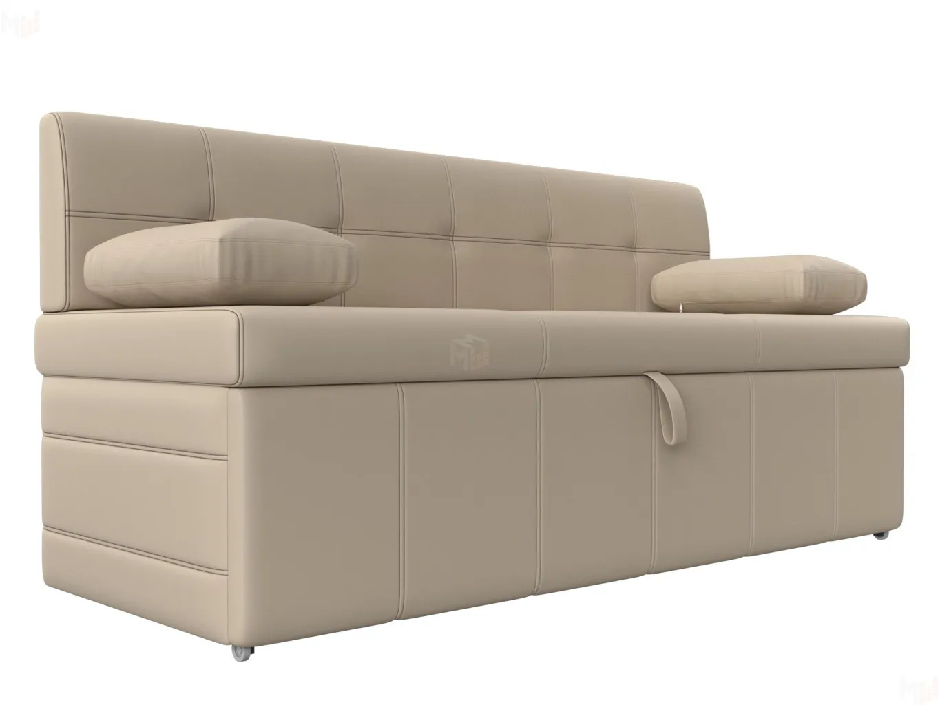 Лео – прямой диванчик для маленькой кухни, способный в считанные минуты превратиться в удобную односпальную кровать. Спинка высокая, прямая, подлокотники выполнены в форме подушек. Изделие не займет много места. Габариты минимальны.