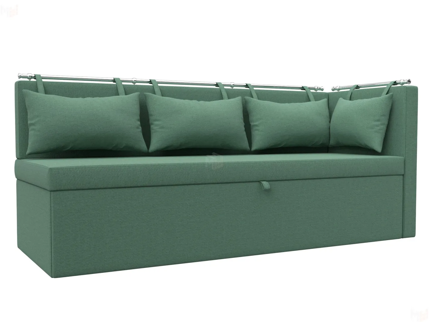 Метро – элегантный угловой диван с компактными параметрами. Для его размещения не потребуется много места. По дизайну схож со скамьей, дополненной небольшим углом. Обратите внимание на спинку, она украшена мягкими подушками с петельками, закрепленными на металлической трубе. Модель устойчива благодаря прочным пластиковым ножкам. -