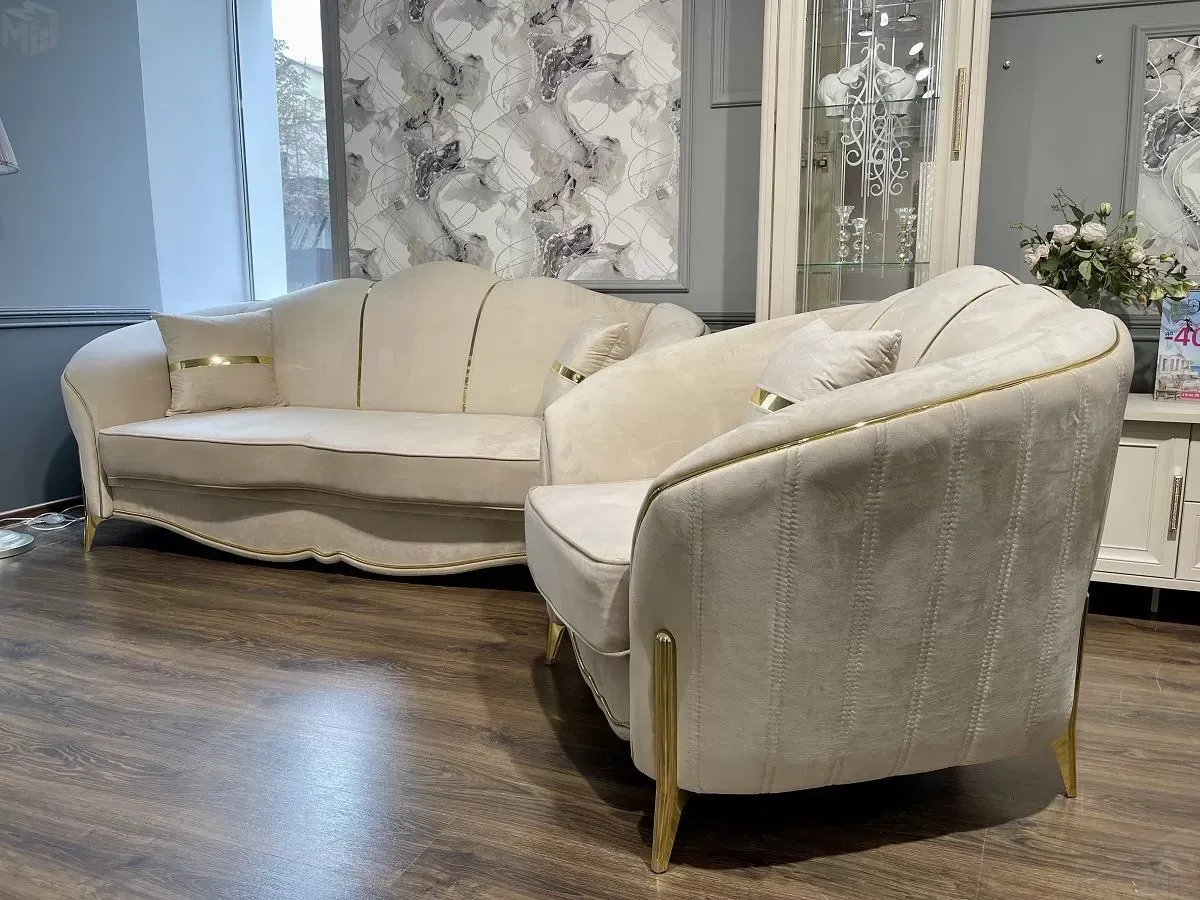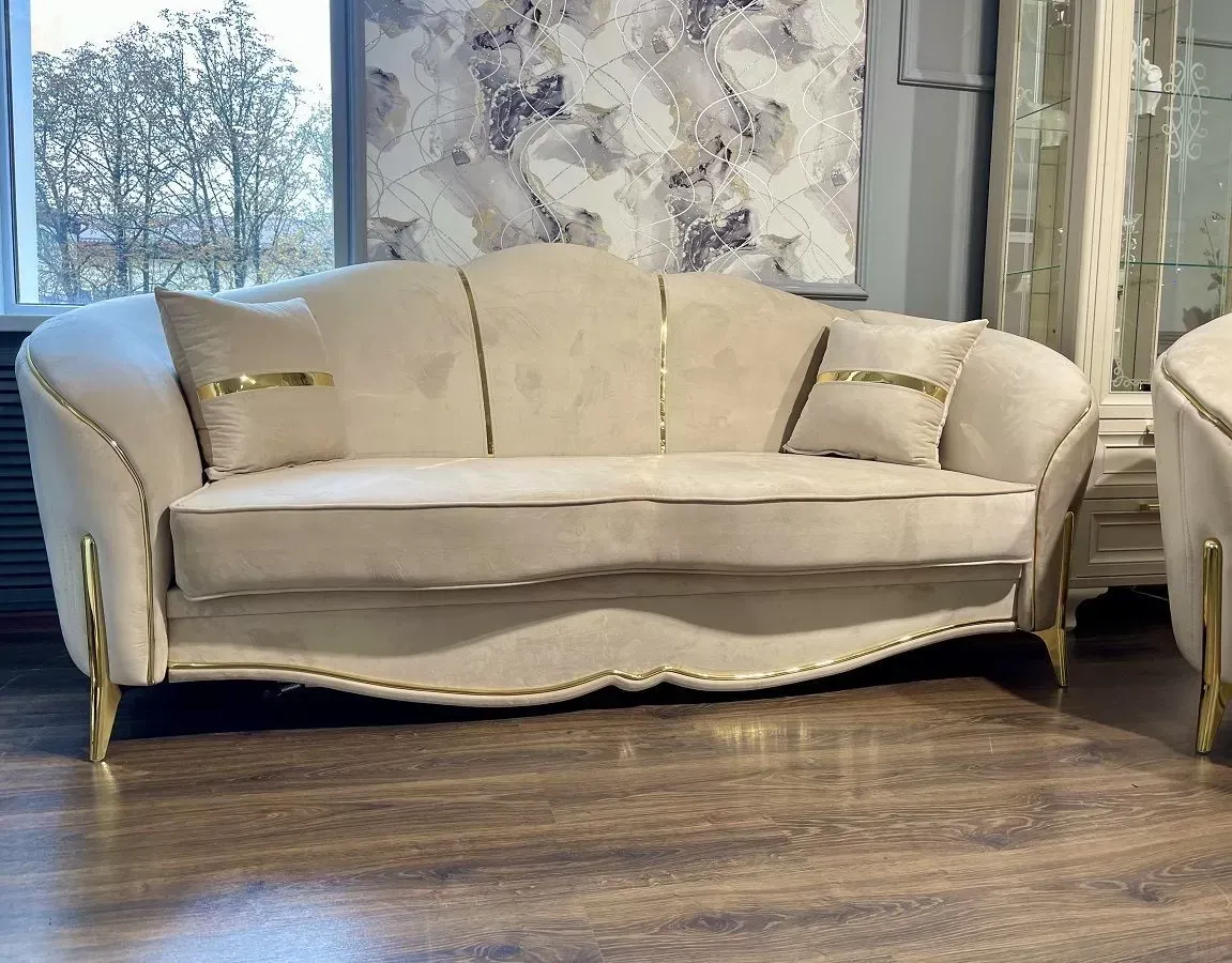 Диван Лара 3х местный бежевый золото
