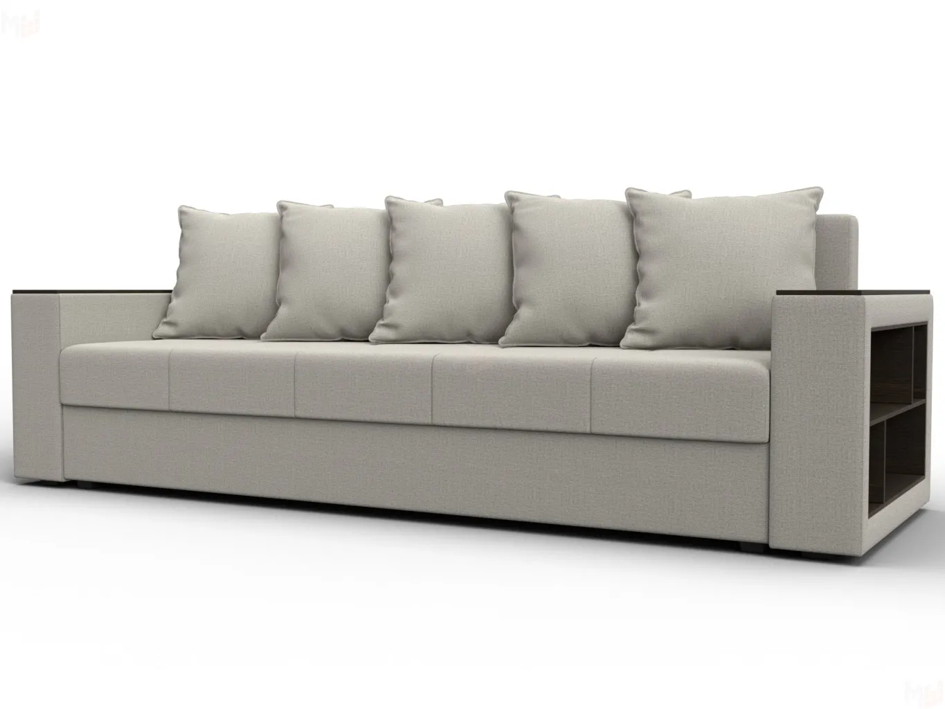 Универсальный прямой диван на ножках из серии Дубай Лайт станет функциональным дополнением гостиной. Комфортное сиденье и удобные подлокотники способствуют хорошему отдыху. Боковые полочки устанавливаются справа или слева и позволят сэкономить пространство для размещения дополнительной мебели.