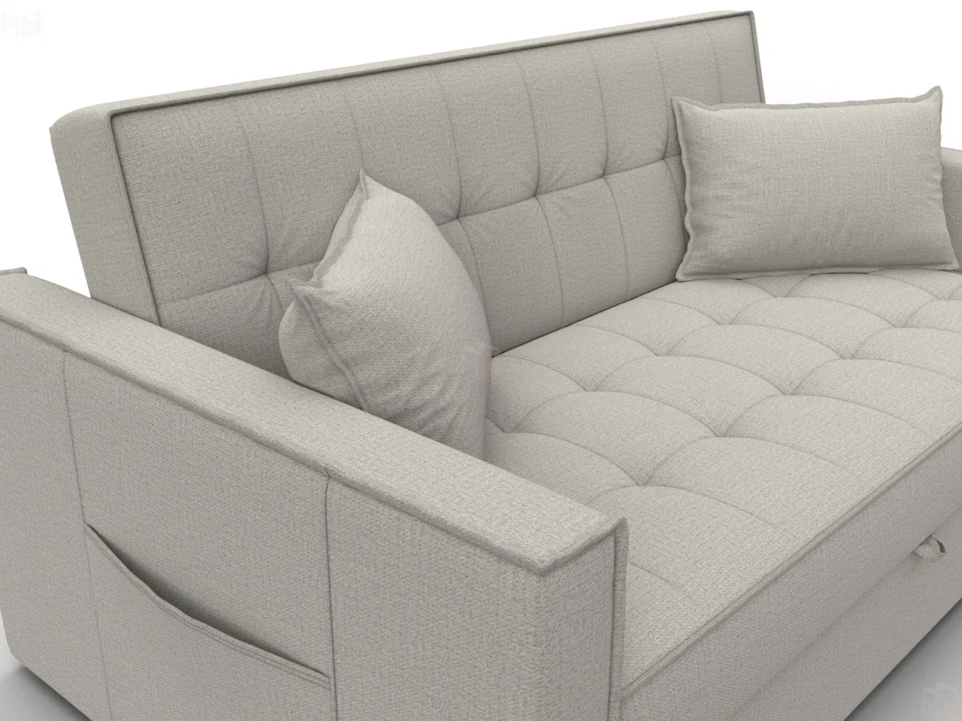 Прямой диван Лига-104 (140) станет функциональным дополнением любой комнаты. Несмотря на миниатюрные габариты, изделие может трансформироваться в полноценную кровать. -
