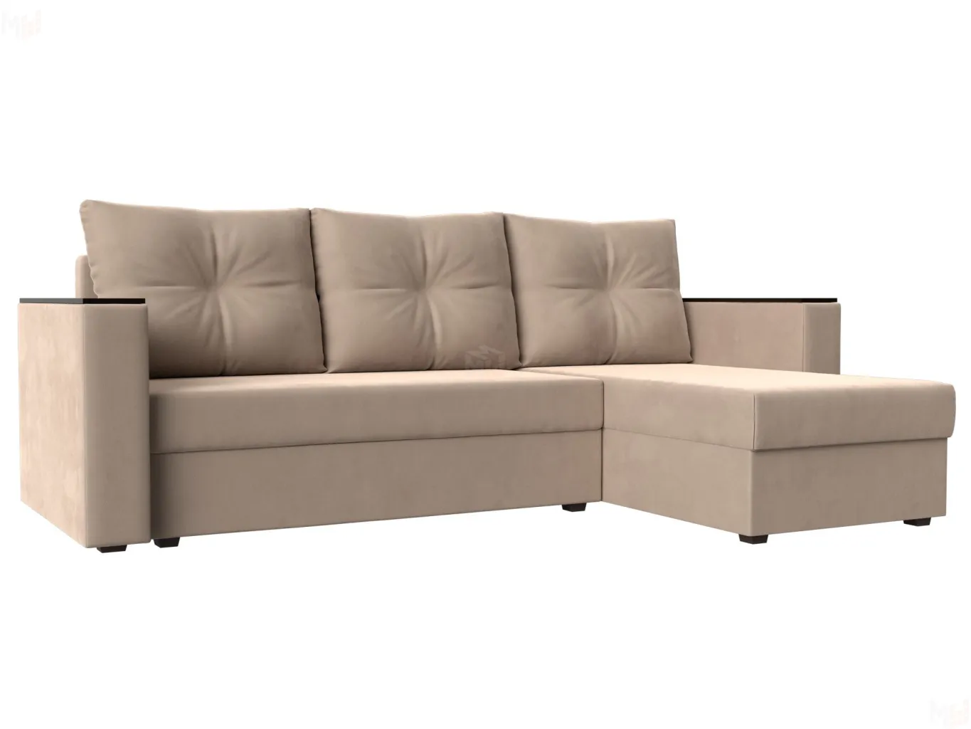 Угловой диван «Атланта без стола» представляет собой бюджетный вариант современного раскладного дивана-кровати с интересным дизайном и прочным каркасом из ДСП, ЛДСП, бруса и фанеры. Три большие мягкие съемные подушки дополняют спинку изделия, а прямые деревянные подлокотники обеспечат удобство и комфорт, а также могут выполнять роль столиков. Под сиденьем расположены вместительные ящики для белья. Устойчивость и надежность конструкции обеспечивают пластиковые крепкие ножки. Угловой диван «Атланта без стола» прекрасно впишется в интерьер как жилой комнаты, так и офиса. В качестве варианта для сна модель «Атланта без стола» тоже отлично подойдет. При раскладывании длина автоматически станет шириной, что позволит свободно лечь двоим. Широкий выбор расцветок позволяет подобрать оптимальный вариант под стилистику помещения.