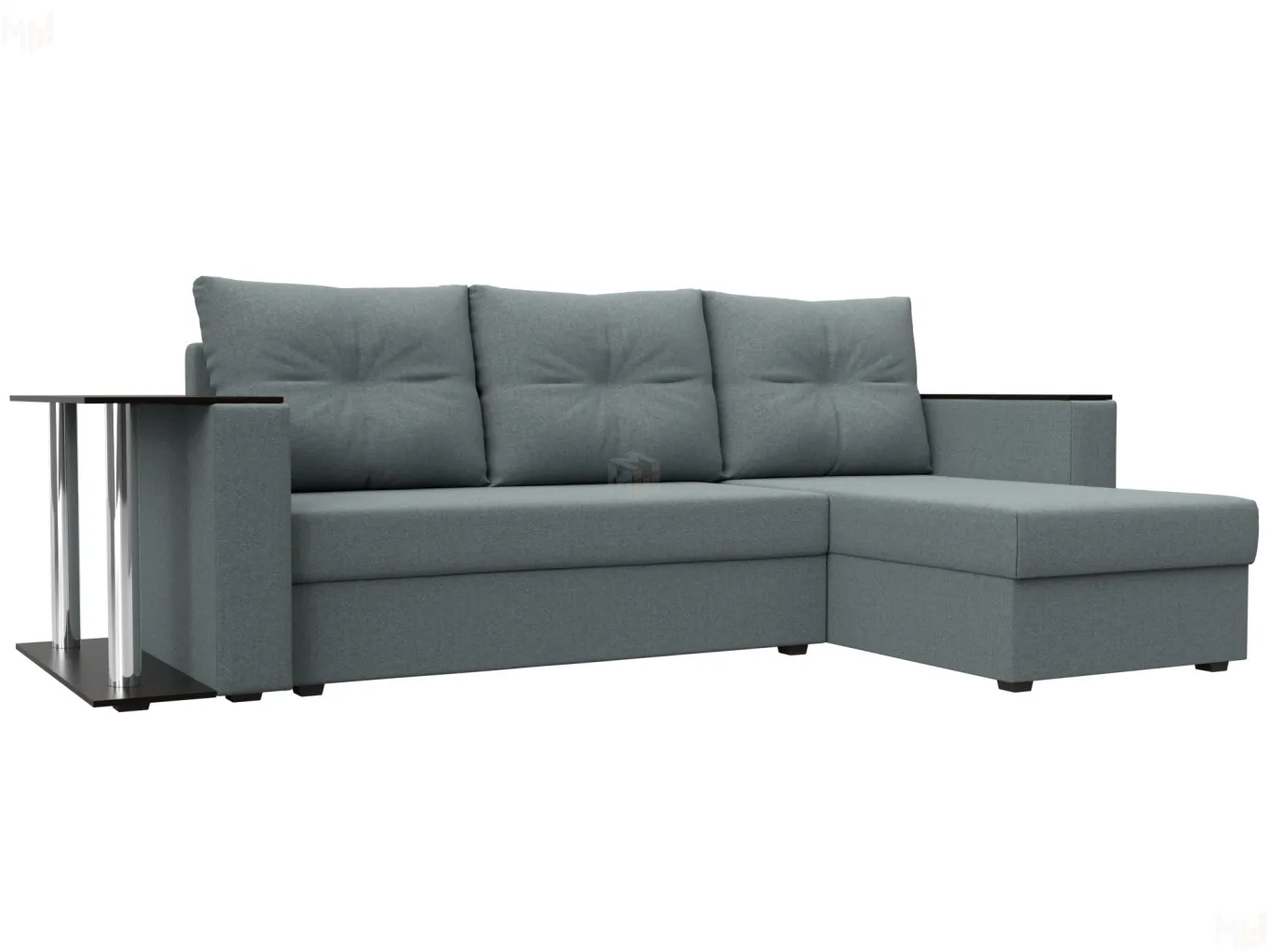 Угловой диван Атланта со столом представляет собой бюджетный вариант современного раскладного дивана с интересным дизайном и прочным каркасом из ДСП, ЛДСП, бруса и фанеры. Три большие, мягкие, съемные подушки дополняют спинку изделия, а прямые твердые подлокотники обеспечат удобство и комфорт. Под сиденьем расположены вместительные ящики для белья. Устойчивость и надежность конструкции обеспечивают пластиковые крепкие ножки. Угловой диван Атланта со столом прекрасно впишется в интерьер как жилой комнаты, так и офиса. В качестве варианта для сна модель «Атланта со столом» тоже отлично подойдет. При раскладывании длина автоматически станет шириной, что позволит свободно лечь двоим. Широкий выбор расцветок позволяет подобрать оптимальный вариант под стилистику помещения.