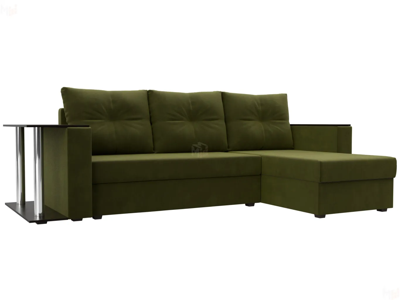 Угловой диван Атланта со столом представляет собой бюджетный вариант современного раскладного дивана с интересным дизайном и прочным каркасом из ДСП, ЛДСП, бруса и фанеры. Три большие, мягкие, съемные подушки дополняют спинку изделия, а прямые твердые подлокотники обеспечат удобство и комфорт. Под сиденьем расположены вместительные ящики для белья. Устойчивость и надежность конструкции обеспечивают пластиковые крепкие ножки. Угловой диван Атланта со столом прекрасно впишется в интерьер как жилой комнаты, так и офиса. В качестве варианта для сна модель «Атланта со столом» тоже отлично подойдет. При раскладывании длина автоматически станет шириной, что позволит свободно лечь двоим. Широкий выбор расцветок позволяет подобрать оптимальный вариант под стилистику помещения. -