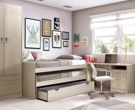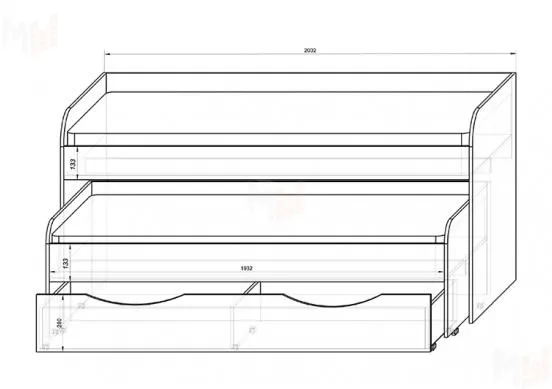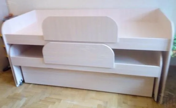 Кровать имеет верхнее спальное место 2000х800 мм и нижнее выдвижное спальное место - 1900х800 мм. То есть кровать пригодна не только для детей, но и для подростков и взрослых.