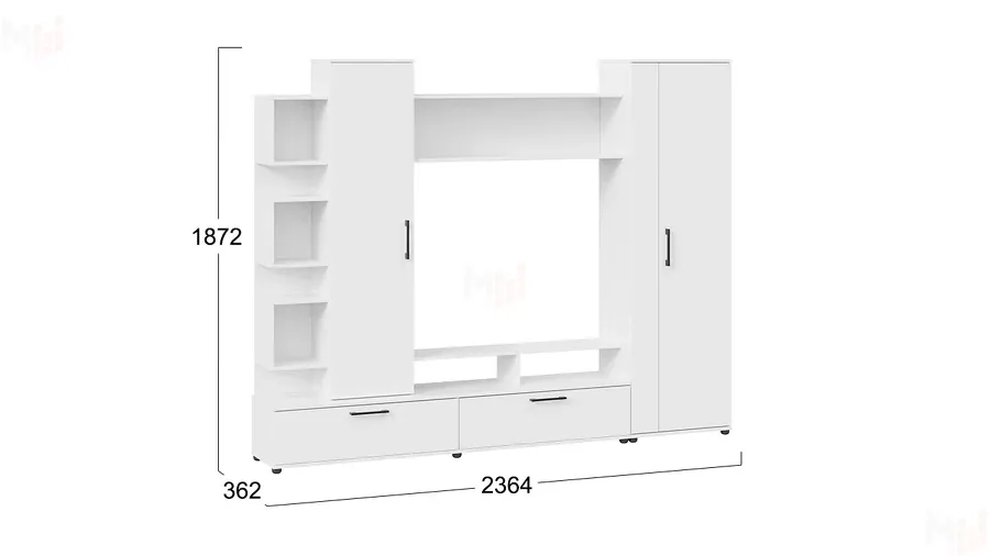 Ширина 2364 мм, Глубина 362 мм, Высота 1872 мм