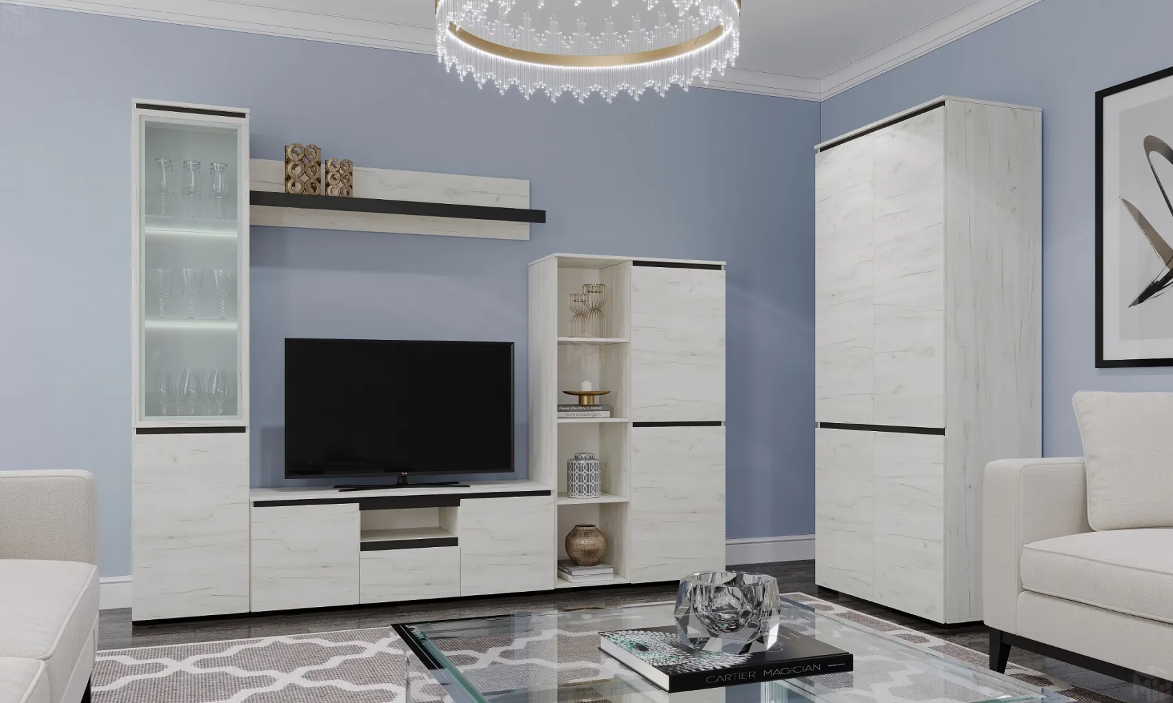 Гостиная ГРЕТТА Дуб Крафт белый - Антрацит №7