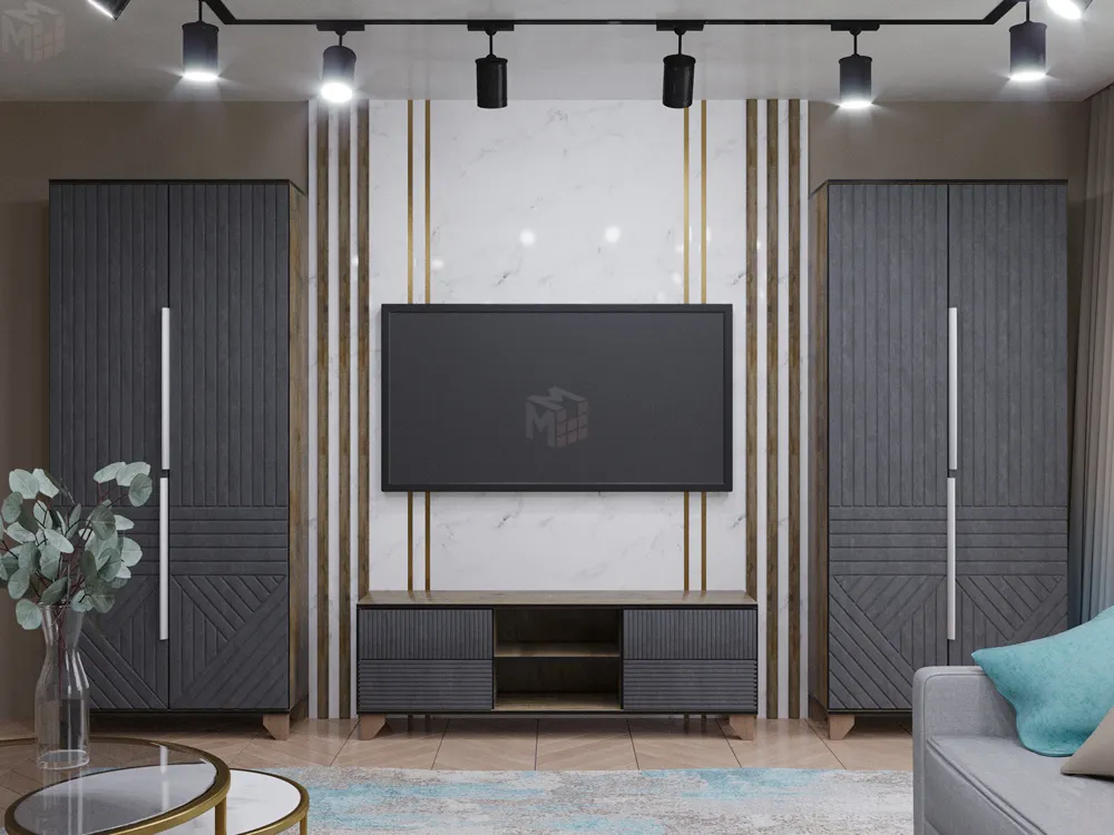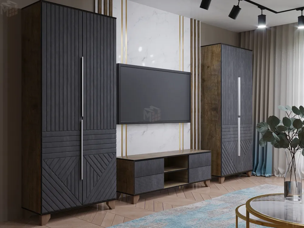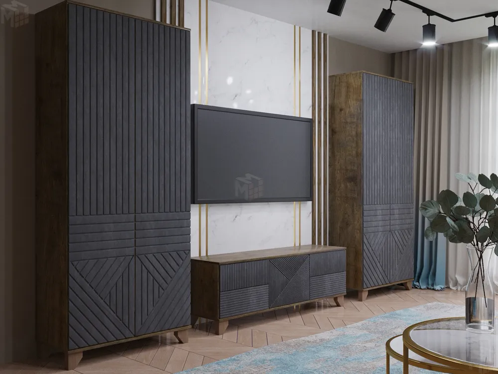 Указана стоимость комплекта мебели из двух шкафов и тумбы под ТВ с нишей.