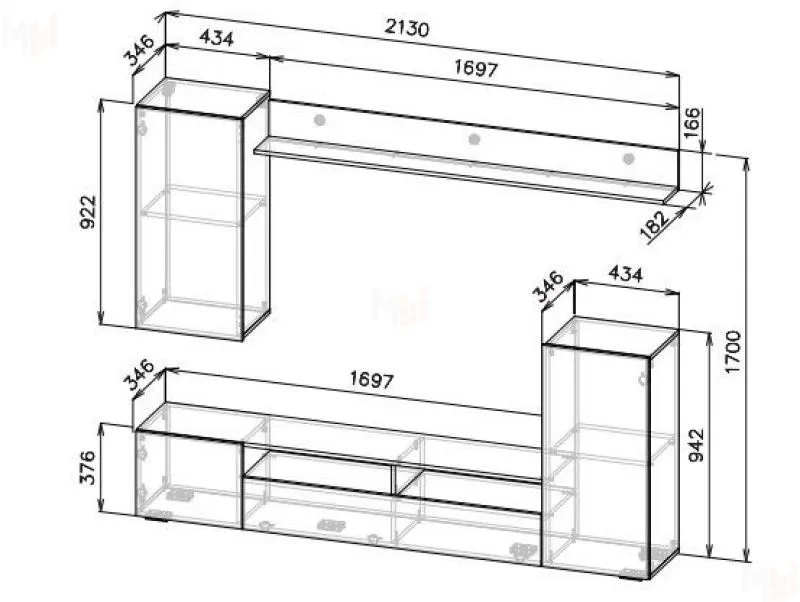 ширина 2130 мм, глубина 346 мм, высота 1700 мм