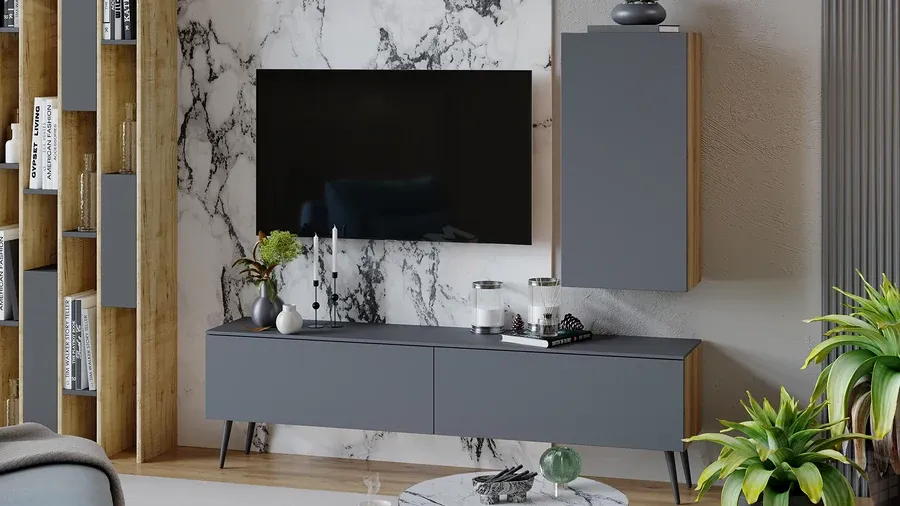 Тумба ТВ Порто с опорами - СМ-393.03.011 Яблоня Беллуно, Графит софт