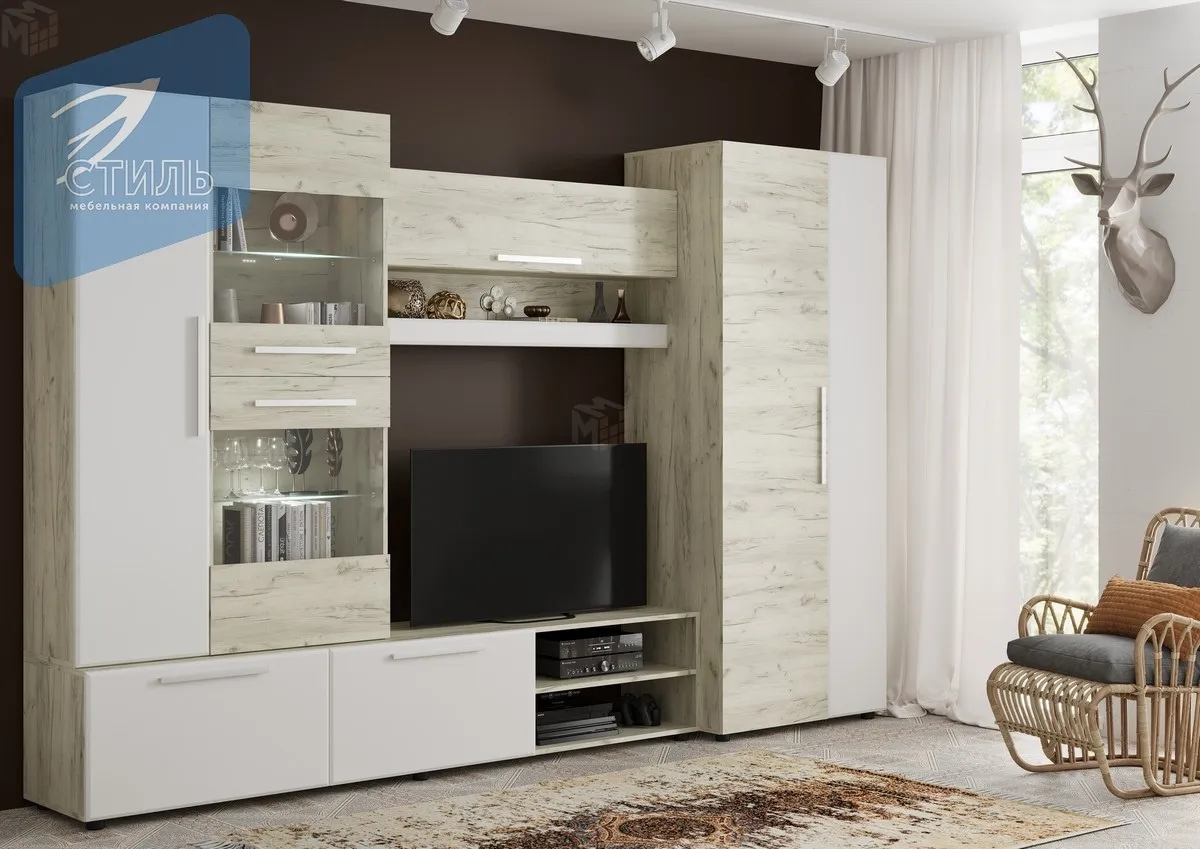 Габаритные размеры всего изделия – Д.3000 х В.2000 х Г.510 мм. Стенка имеет возможность собираться как на левую, так и на правую сторону. Состоит из 4-х модулей (реализуется комплектно - отдельными модулями не поставляется):