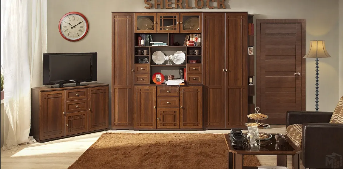 При меблировке гостиной важно найти баланс между стилем, эргономикой и практичностью. И рационально использовать имеющиеся квадратные метры. Гостиная Sherlock 5 (Шерлок 5) за 63 220 р. — яркое воплощение этого принципа. В модели сочетаются великолепная эстетика, высокое качество всех материалов и продуманная система хранения. Она не занимает слишком много места в комнате и не создает эффекта загромождения, но при необходимости у вас всегда будет удобный доступ ко всем хранящимся вещам. Также производитель Глазов сделал ставку на интересный дизайн, который хорошо будет гармонировать со многими популярными интерьерными стилями.
