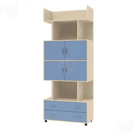 Шкаф комбинированный Дельта 5.03 - удобное решения для хранения вещей в детской комнате. Состоит из 7 открытых ниш разного размера, в центре 4 закрытых секции за распашными дверями, а также 2 вместительных выдвижных ящиков. Оригинальный дизайн даст возможность вписать его в уютную детскую комнату. Шкаф установлен на регулируемых опорах.