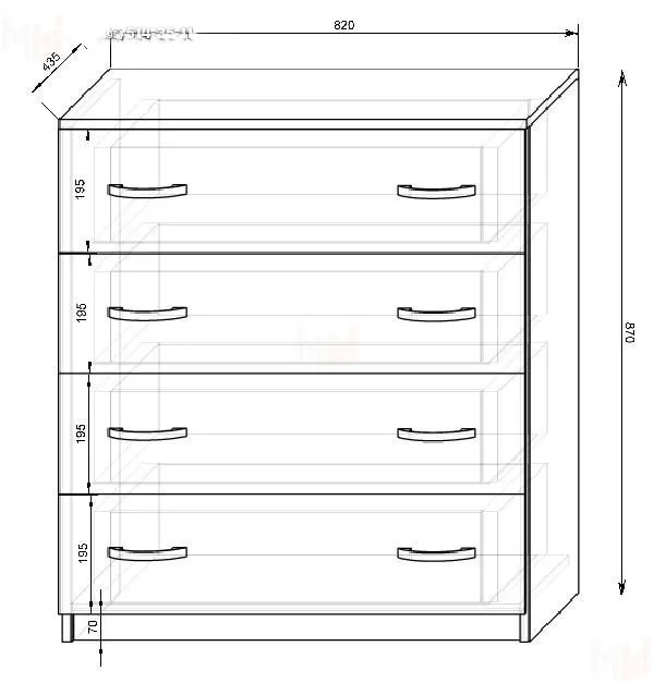 Комод для детей Фанки Кидз Классика арт ФКК-13/5 состоит из четырех выдвижных ящиков на роликовых направляющих.