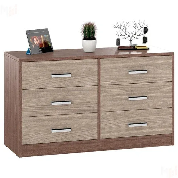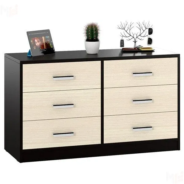 Шесть выдвижных ящиков на шариковых направляющих, делают комод практичным предметом обстановки. Цветовое решение: венге/дуб молочный или ясень шимо темный/ясень светлый.