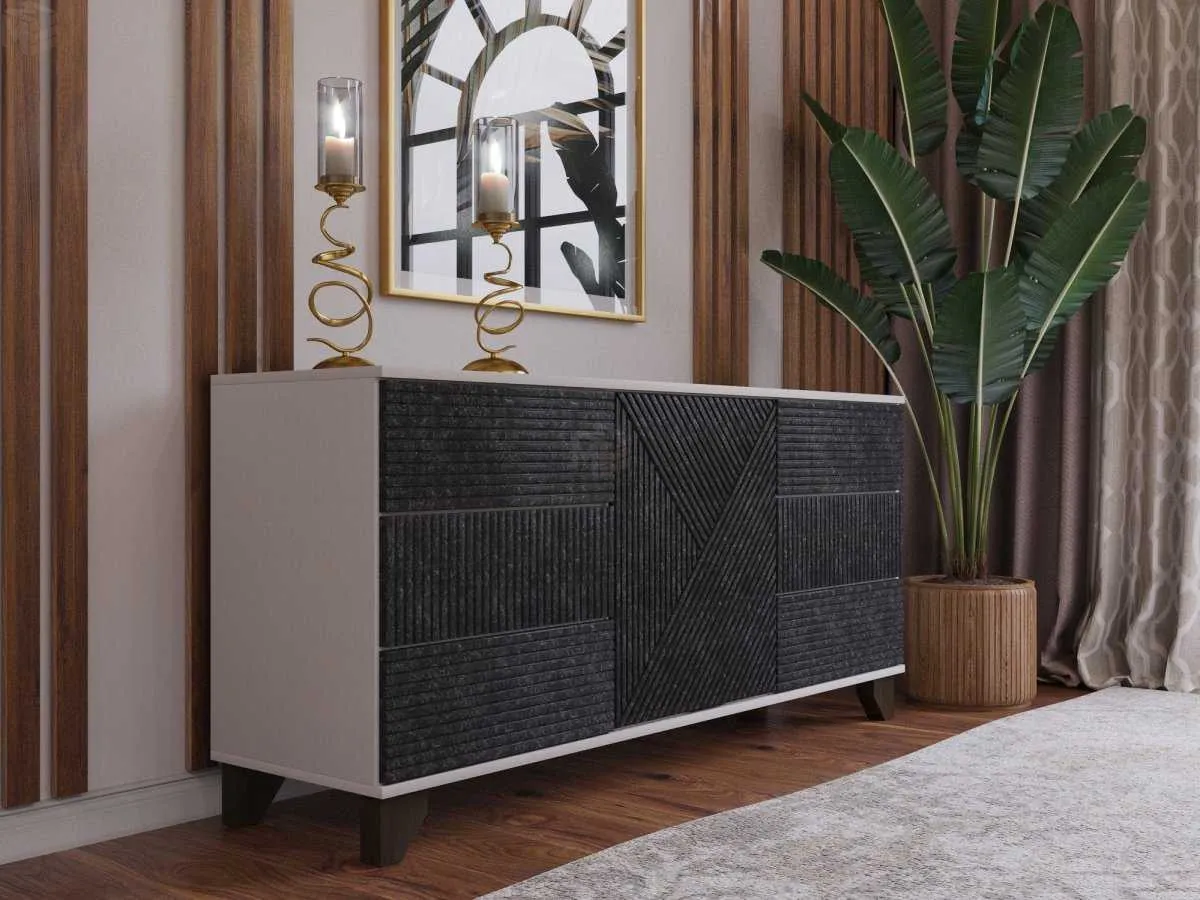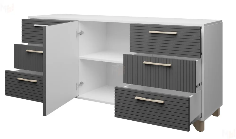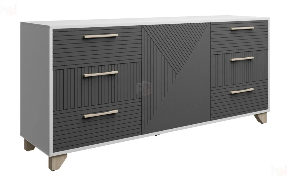 Комод Копенгаген станет практичным решением и для спальни, и для гостиной. Он прекрасно подойдет для хранения предметов одежды, текстиля, личных вещей. Поверхность комода можно использовать для размещения предметов декора. Модель оснащена шестью выдвижными ящиками на шариковых направляющих полного выдвижения. Между ящиками за створкой располагается ниша с двумя полками. Створка крепится на петли с доводчиком для плавности хода. Для открывания ящиков установлены ручки из массива дуба, на створке конструкцией предусмотрен механизм «push-to-open». Комод устанавливается на ножки из массива дерева, регулируемые по высоте. Подобрать необходимую модель для интерьера позволит комбинирование расцветок фасада и корпуса. -