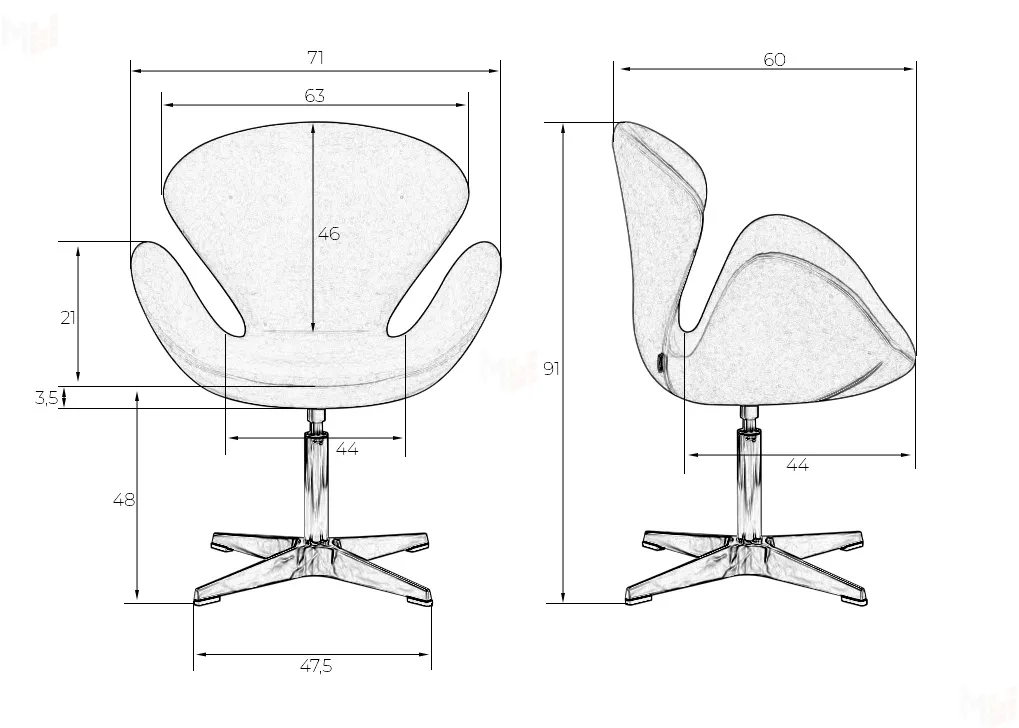 Кресло дизайнерское DOBRIN SWAN (черный кожзам P13, алюминиевое основание)