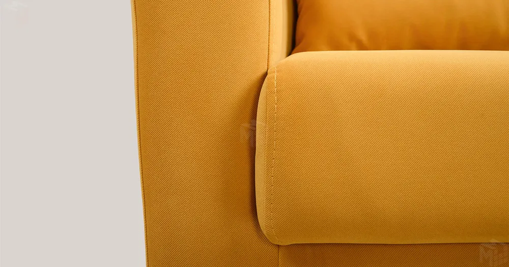 Декоративная утяжка на спинке кресла, декоративная подушка в цвете кресла, металлические опоры переходят в декоративный элемент подлокотника