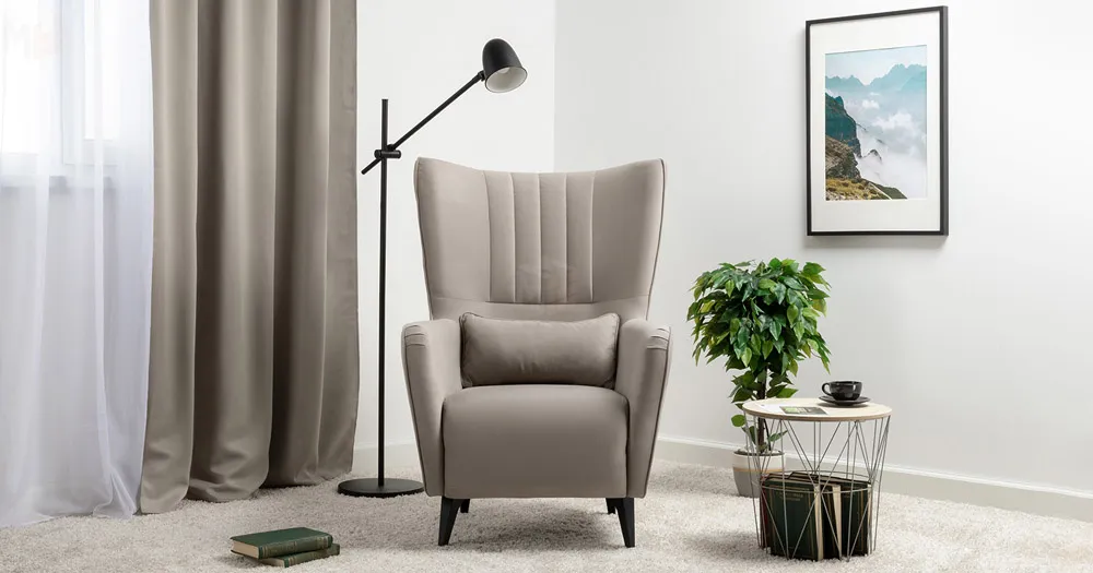 Вертикальная объемная стежка в средней части спинки; кант на спинке, подлокотниках и декоративной подушке