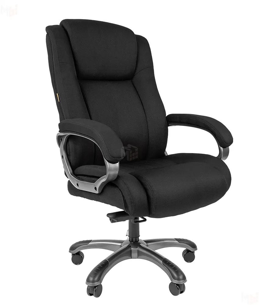 Крестовина — пластиковая, крашенная с защитными накладками. Усиленный механизм качания повышенной комфортности с фиксацией в рабочем положении. Обивка кресла — акриловая ткань серии SX черного и серого цвета.