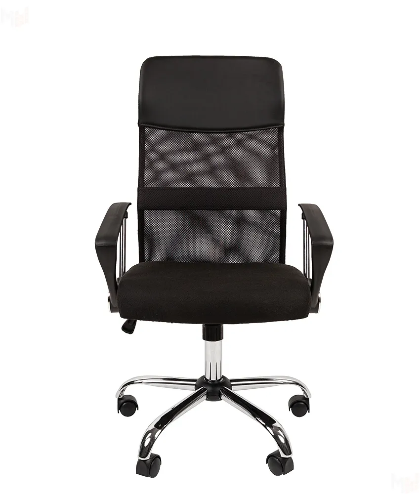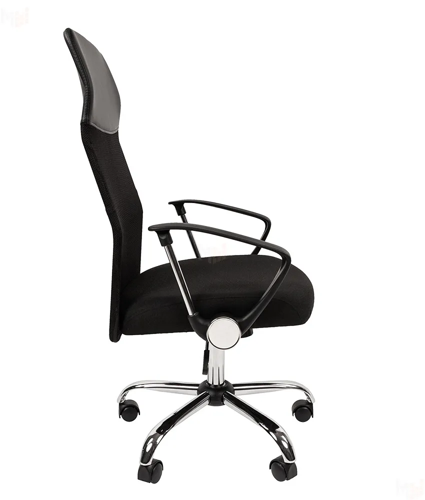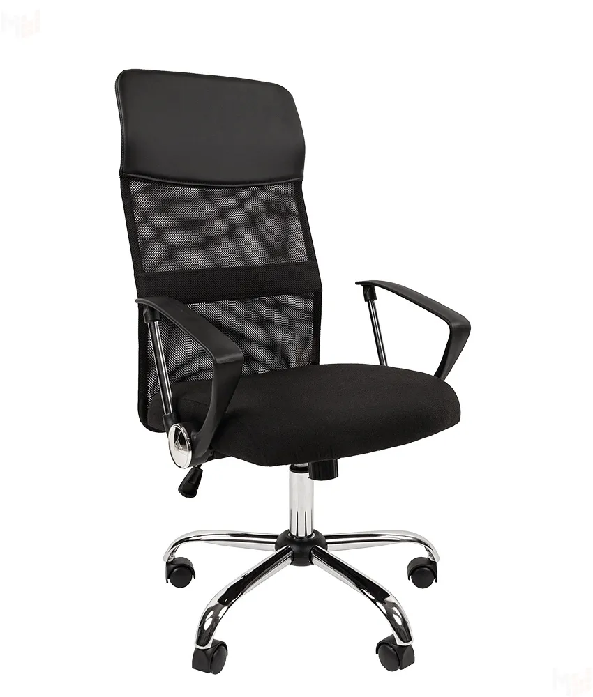 Одно из самых популярных компактных кресел руководителя. Стильное (обратите внимание на яркие хромированные детали и сетчатую спинку!), современное, эргономичное - и недорогое.
