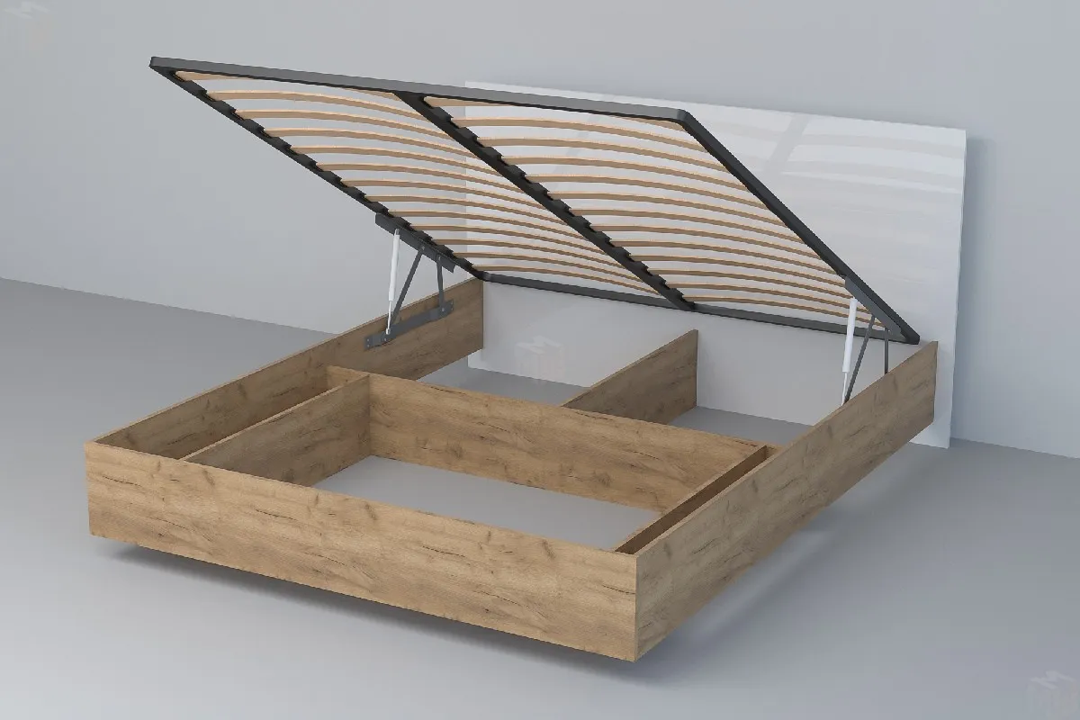 Кровать 031 Эго Дуб Крафт Золотой/Белый Глянец (ЛДСП) ПМ 1400х2000