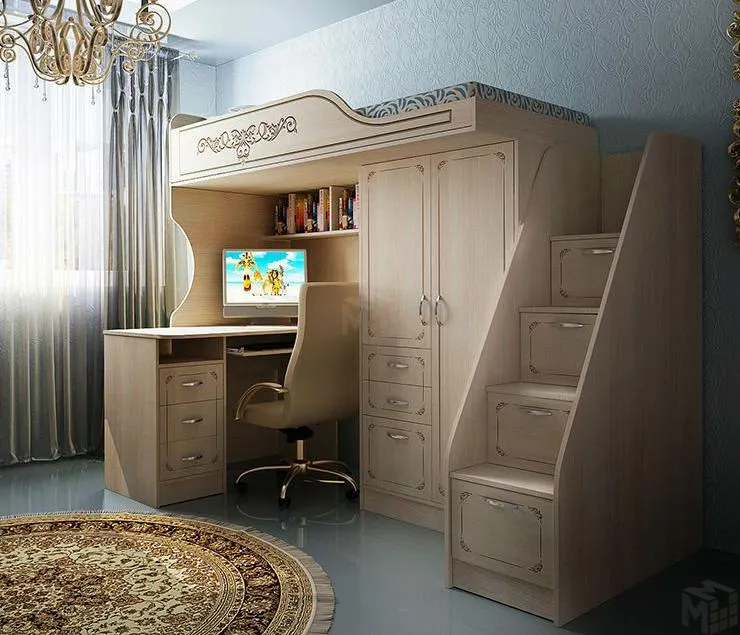 Ниша под спальным местом предусмотрена как игровая зона или можно поставить письменный стол или кресло.