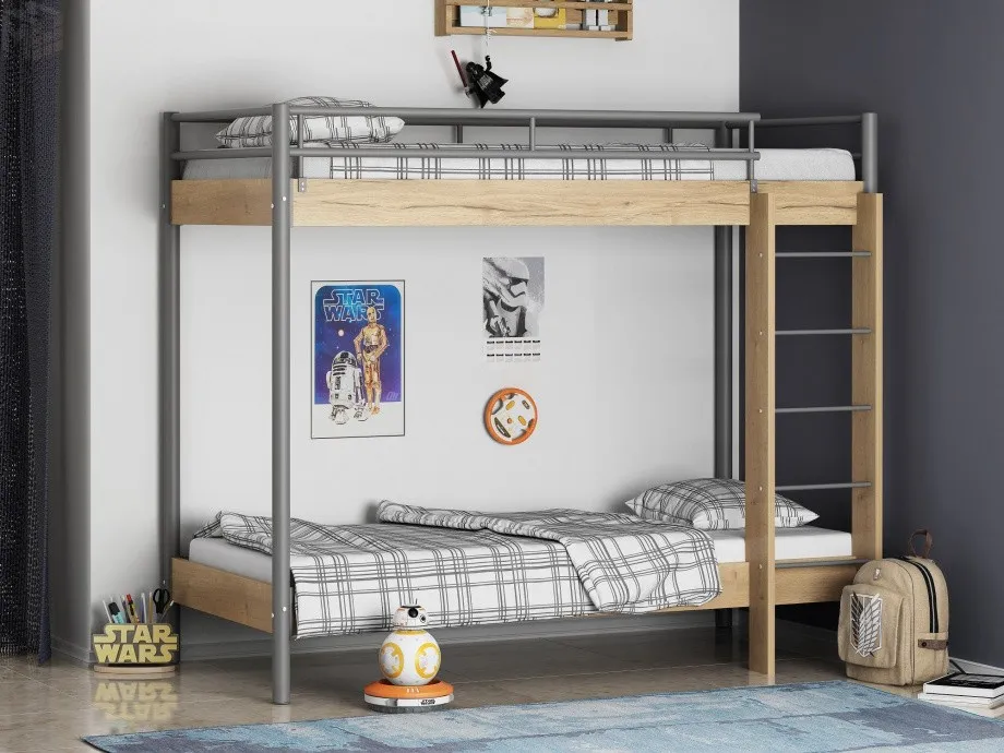 В детской мало свободного места, но нужно найти способ разместить все необходимое, не создавая эффекта нагромождения? Кровать двухъярусная Хельга — отличное решение, благодаря которому ценные квадратные метры будут использованы максимально рационально. С габаритами 1080х2080х1760 модель идеально впишется даже в небольшую комнату или позволит поставить больше предметов мебели в просторной, чтобы была и зона для работы, и игровая, как рекомендуют профессиональные дизайнеры. Но главное, что вы покупаете товар эталонного качества, ведь производитель Формула мебели всегда делает ставку на надежность и длительный срок службы.