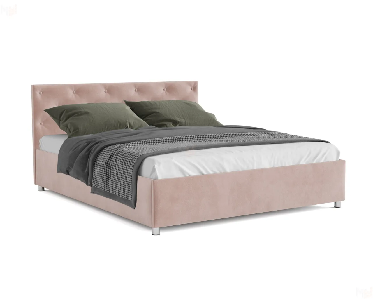 Кровать укомплектована подъемным механизмом. Такая конструкция дает возможность полностью использовать пространство под спальным основание как место для хранения различных вещей.