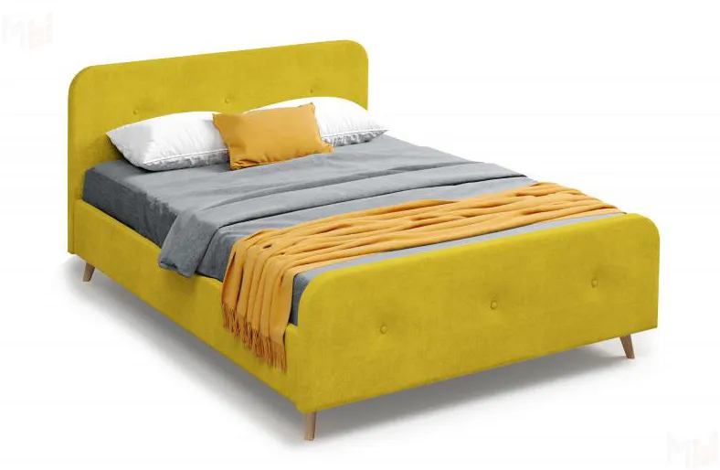 Изголовье имеет закругленный силуэт, обтянут велюровой тканью с пуговицами, что обеспечивает дополнительную мягкость и уют. Высокие стильные ножки из массива березы создадут ощущение легкости и воздушности.