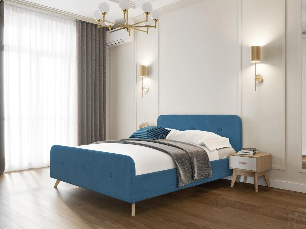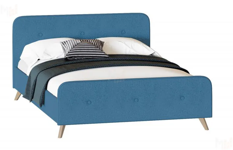 Изголовье имеет закругленный силуэт, обтянут велюровой тканью с пуговицами, что обеспечивает дополнительную мягкость и уют. Высокие стильные ножки из массива березы создадут ощущение легкости и воздушности.