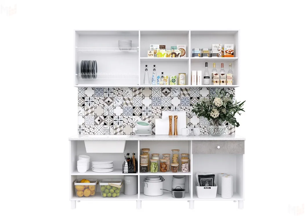 Каркас выполнен из ЛДСП белого цвета, фасады ЛДСП Белый.