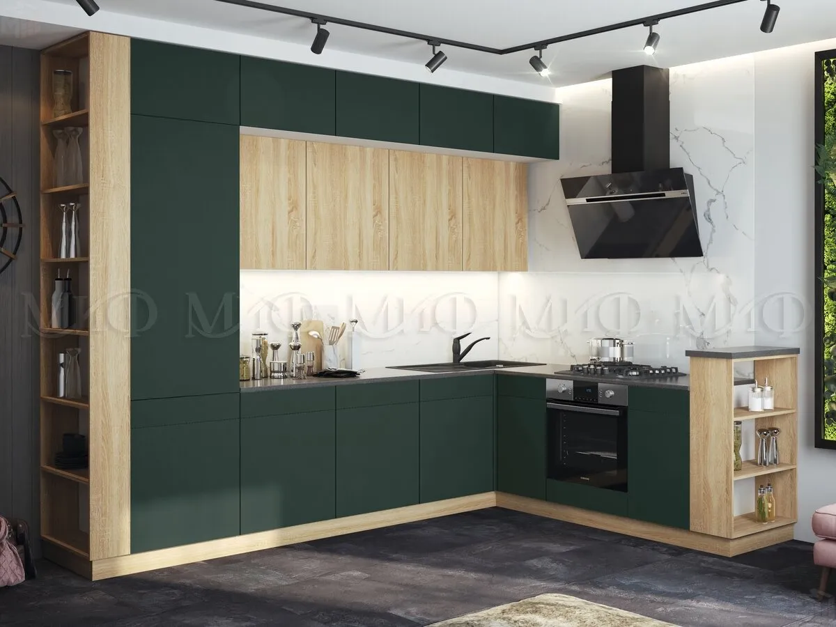 Кухня Техно-5 New угловая 3,2*2,24 сонома/мэни грин