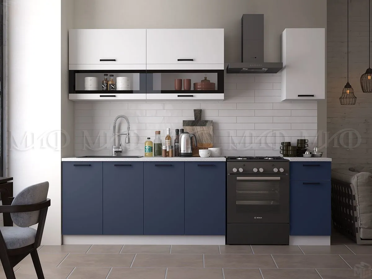Кухня Техно New 2,0 комп.№2 Белый снег/Ультрамарин софт