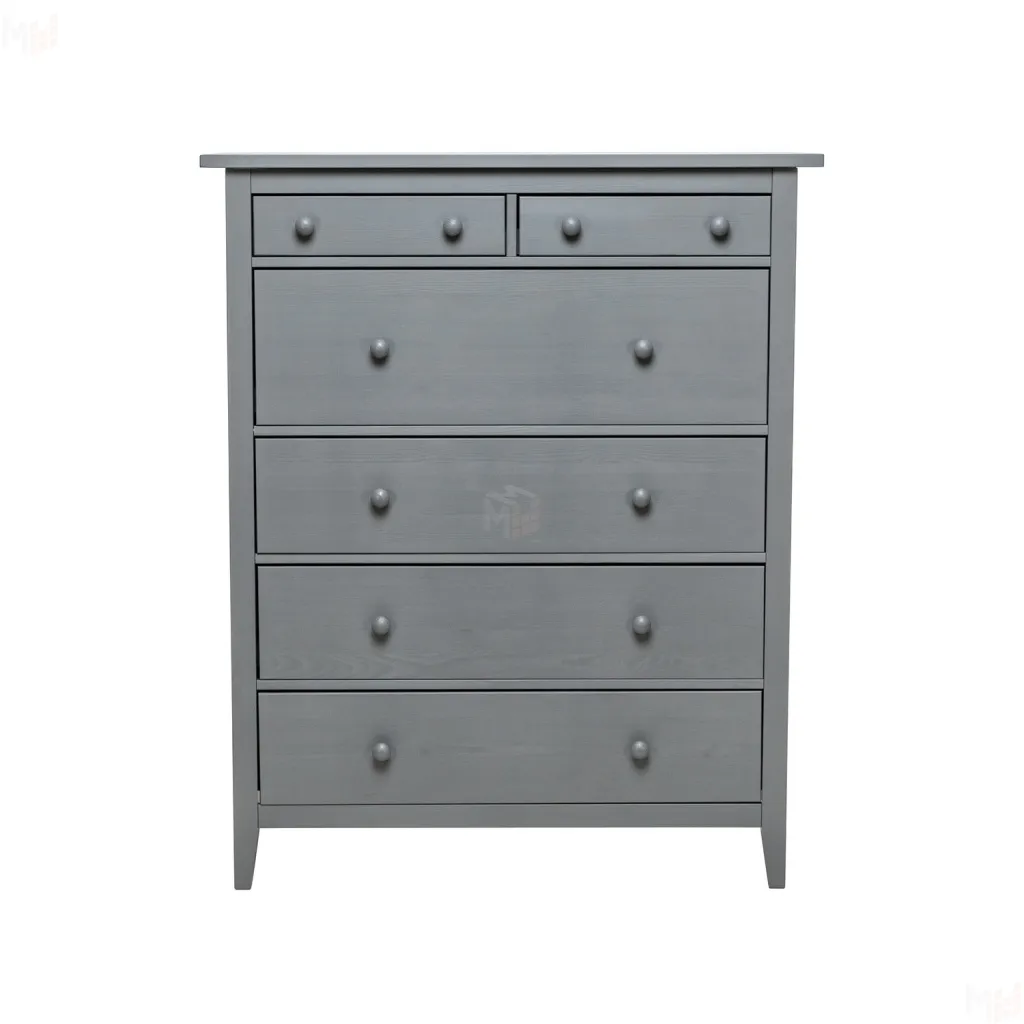 Комод Leset «Мира 06» – практичный и стильный предмет интерьера из массива сосны. Материал отличается экологичностью, прочностью, долго сохраняет внешнюю привлекательность, прост в уходе. Комод из 6 ящиков удобен для хранения белья, аксессуаров и прочих предметов гардероба, потому что имеет ящики разной высоты. Комод в скандинавском стиле будет хорошо смотреться в спальне, гостиной, домашней столовой, прихожей или кабинете, оформленном в современном стиле. Приятное на ощупь матовое покрытие, надежная фурнитура, устойчивые высокие ножки – все это можно назвать главными преимуществами представленного предмета меблировки. Изготавливается в черном, сером и белом цветах.