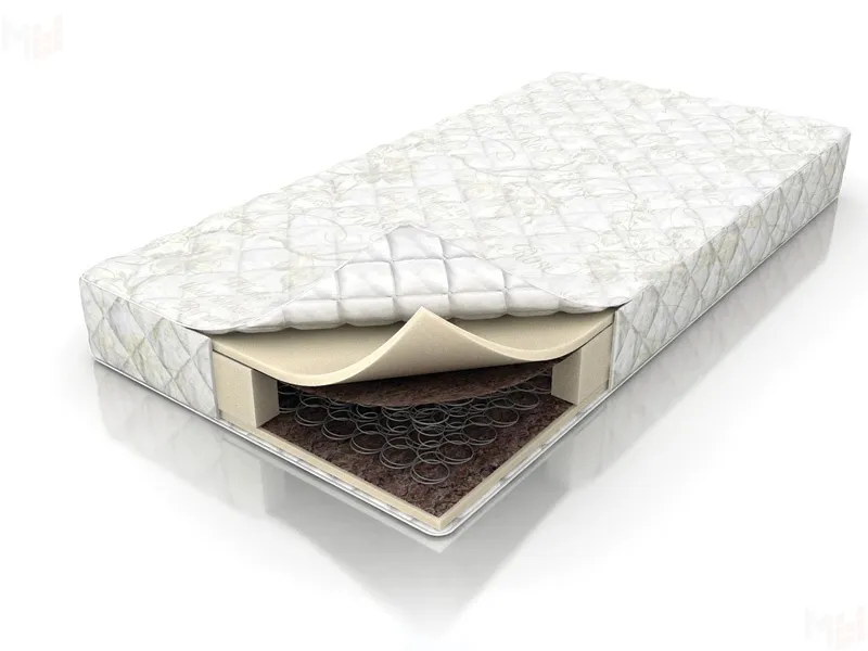 Классическая модель матраса на основе пружинного блока Боннель, с плотным термоскрепленным войлоком и пенополиуретаном.