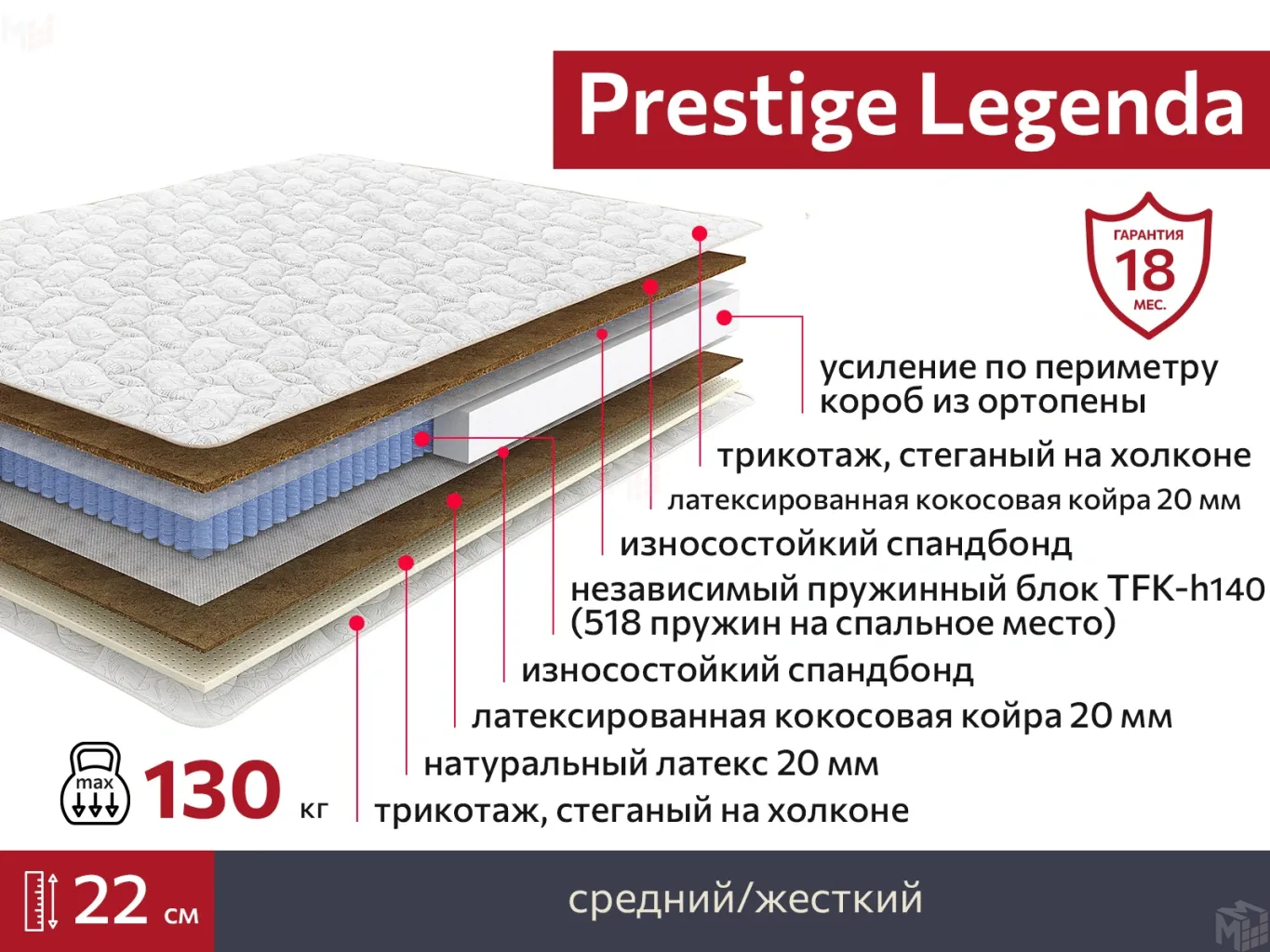 Матрас Prestige Legenda помогает расслабиться и восстановиться за время сна.