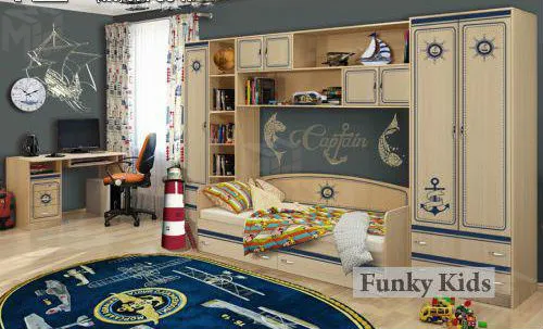 Мебель для комнаты Капитан для детей и подростков производится из качественных и безопасных материалов: ЛДСП компании Эггер (толщина 16 см, класс Е1), ПВХ кромка (2 мм), европейская фурнитура, металлические крепления.