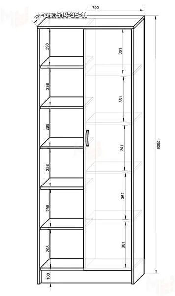 - стеллаж комбинированный однодверный. Наполнение - полки;