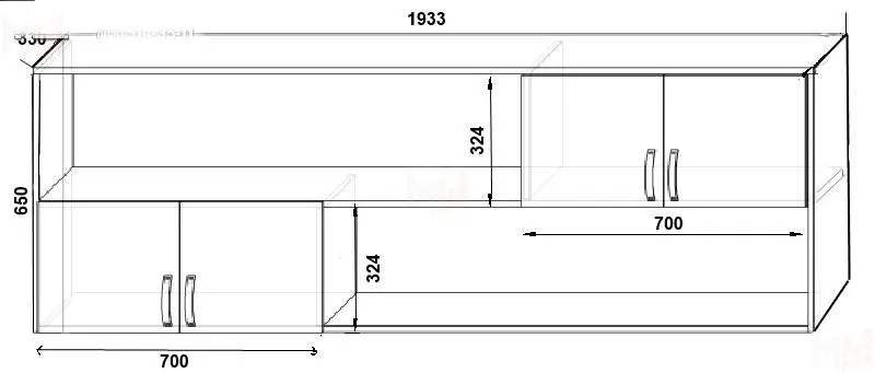 - шкаф двухсекционный. Модуль поделен на две части: гардероб - полка, штанга и выдвижные ящики;